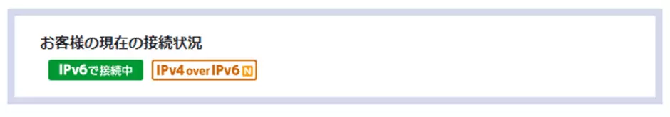 従来型のPPPoEで接続すると、結果には「IPv4で接続中」とだけ表示されます。
