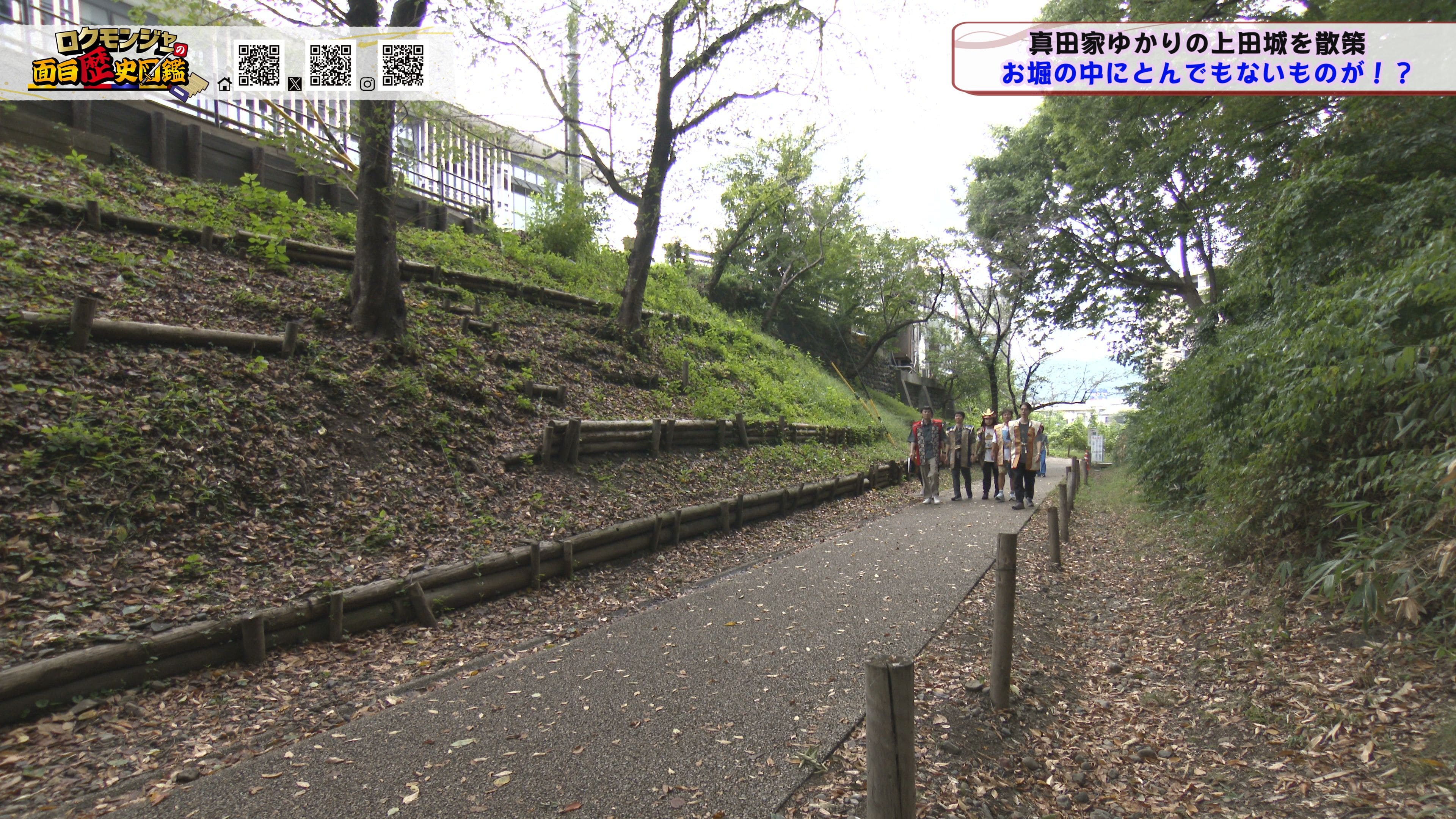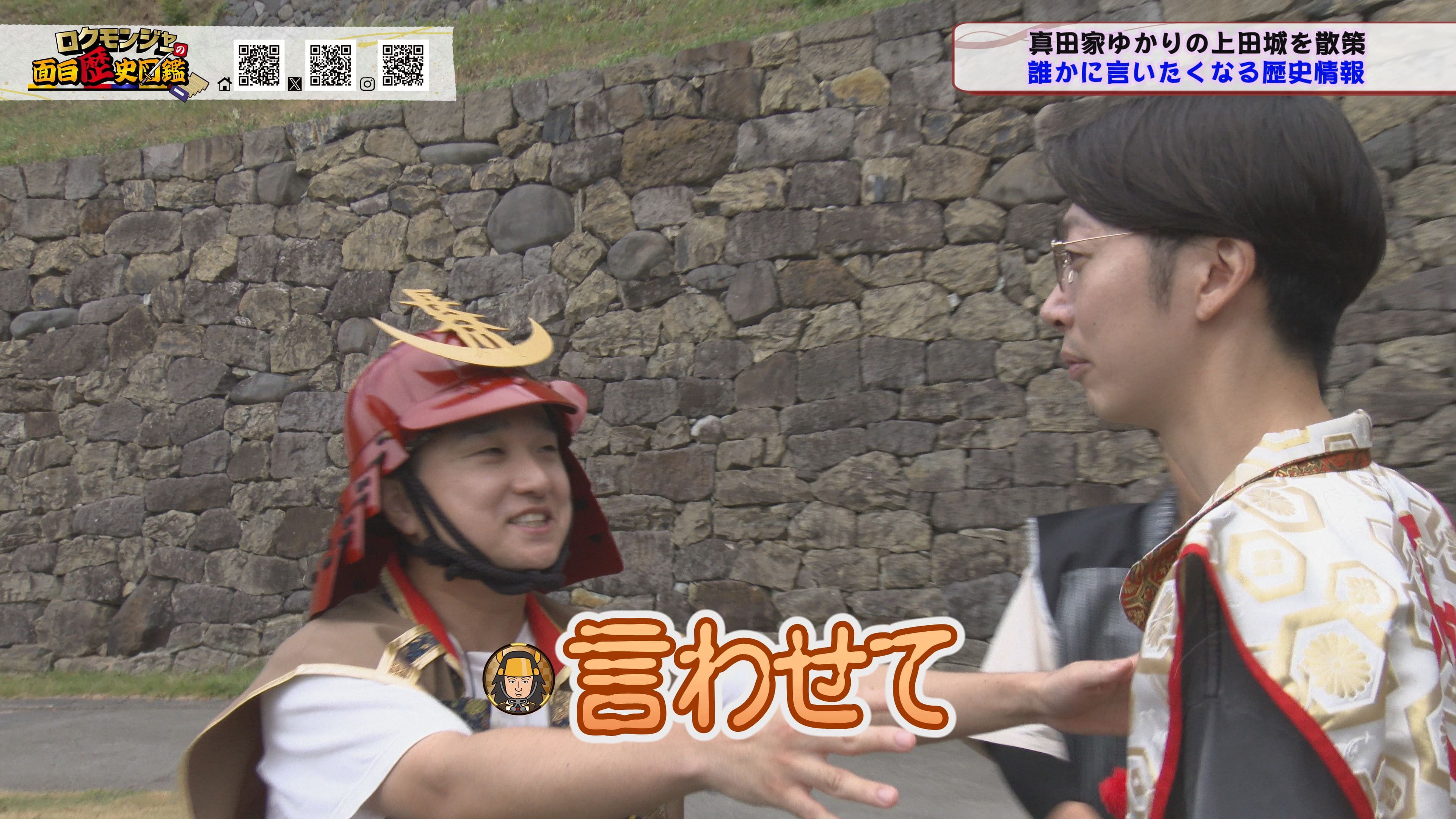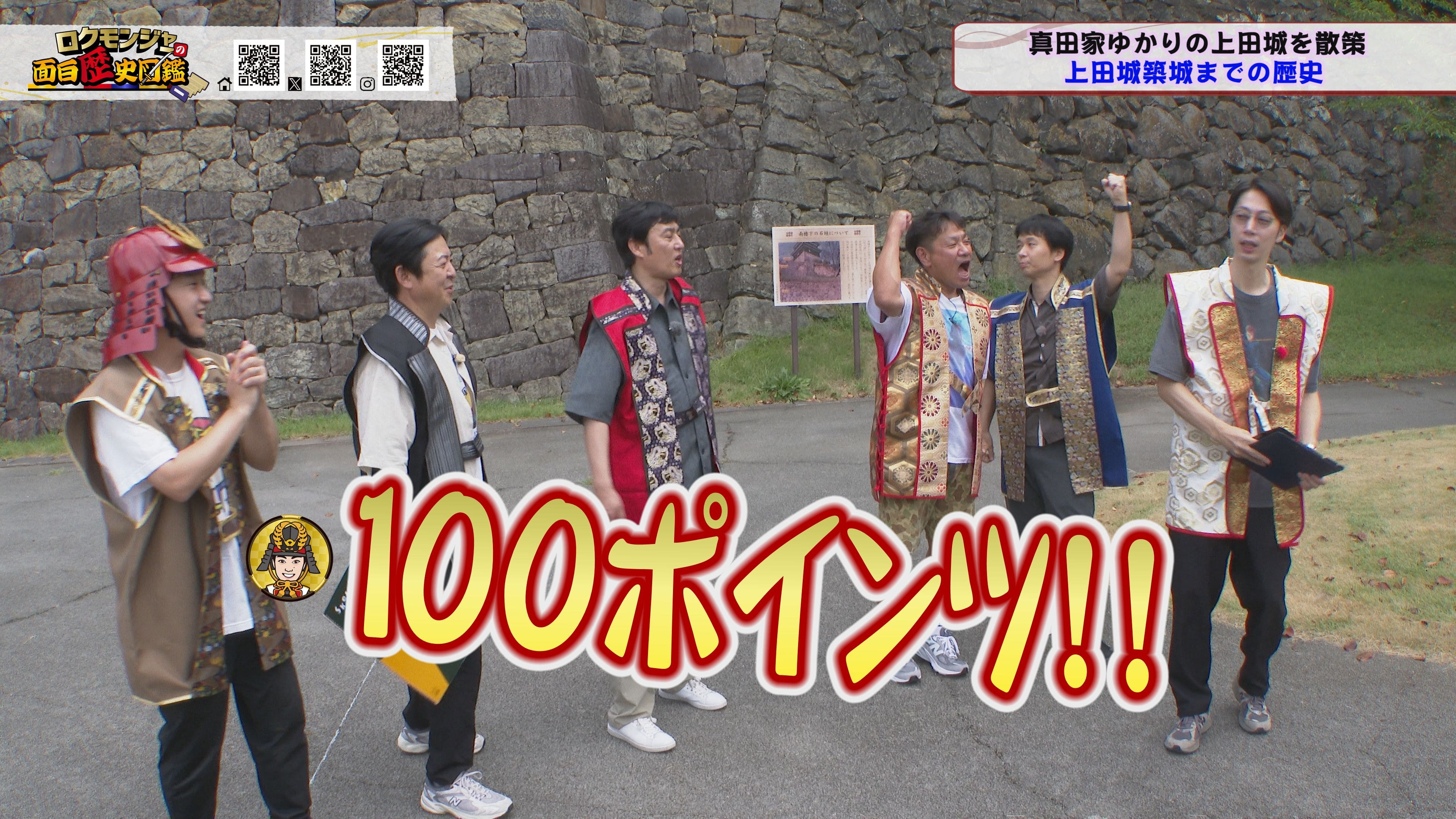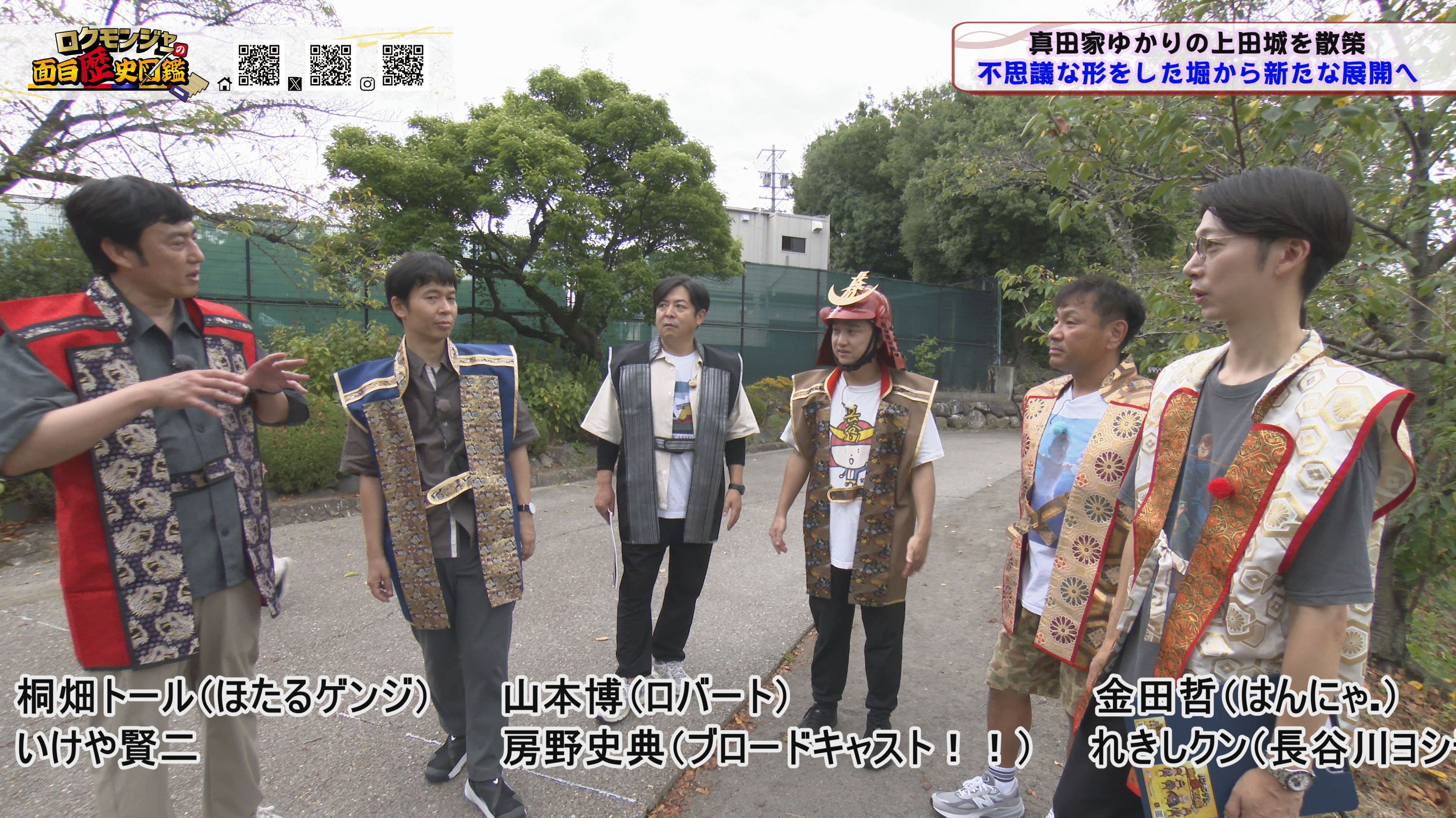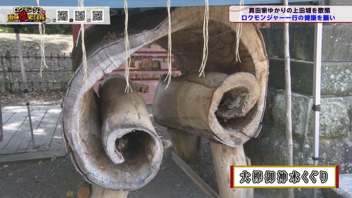 ※他ケーブルテレビでの放送日時は異なる場合がございます、ご契約のケーブルテレビ今日の番組表をご確認ください金田さんのマスターオブセレモニーで動き出した今回のロクモンジャー!前回から真田家ゆかりの地、上田城の散策を開始。今回は散策の続きから再開です!まず一行が訪れたのは上田城のメインといっても過言ではない櫓門。この櫓門、両脇に南櫓と北櫓を従え、堂々たる雰囲気を醸し出しています。 歴史好きにはたまらない場所ですが、そうでない方も大興奮する場所だったんです!ご存じの方も多いと思いますが、大人気映画「サマーウォーズ」に出てくる陣内家の本家が、こちらの櫓門を参考に描かれているんです!サマーウォーズ好きにしてみたら、この場所が聖地巡礼のスポットになるわけです!! そんな櫓門を抜けようと先へ進むと大きな岩に遭遇!この岩は真田石と呼ばれており、とても面白い逸話も残されています。どんな逸話が残されているかは本編でご確認ください。 更にそこから発展し、いけやクイズが発動!真田親子の話し合いの場についての3択クイズ。いったいどんな内容なのか??櫓門を越えた一行は、櫓門内部の散策へと進んでいきます。櫓門内部を見る前にまずは南櫓を散策。そこで気になるものを発見した金田さん!そこにあったのは何と世界のYAZAWA???更に奥へと進んだ櫓門内部にはなんと火縄銃が一丁。この火縄銃を構え櫓門の格子から外を狙う疑似体験ができるんです! こうなってくると、やらないわけにはいかない一行!このキルゾーン実現は当然、博さんの役目!博さんが単身外へ出て敵役を実演!果たして博さんは無事櫓門を向ける事ができるのか??博さんの安否も気になりますが、番組はさらに先へと進んでいきます。櫓門を抜けた先にあるのは眞田神社。実はこの神社、ロクモンジャーととても深い縁があるんです。その縁とは?? なんと9年前にバスツアーで訪れた神社だったんです。その際、6人で撮った写真を思い出し、同じポーズで写真を撮ることに!!9年前と現在のロクモンジャーが一つの画面に収まりました♪更にここ眞田神社で絵馬に願い事を書いていたことを思い出し、その絵馬を探すことに!! 果たして9年前に書いた絵馬は残されているのでしょうか?眞田神社では大欅御神木くぐりを体験したのち、全員で参拝。更に奥へ進むと真田井戸が。こちらではいけやクイズが再び発動。どんな問題が出たのかは本編でご確認、そして挑戦してみてください。 真田井戸を散策した後、一行が向かったのは西櫓。こちらの櫓は当時から場所も変わらず立ち続ける現存の櫓です。当時の建造物がそのまま、その場所に残り続ける!これって実は本当に凄い事なんですよね!目の前で現存の西櫓を見て改めて実感します。 今回も見どころ盛りだくさん!ぜひご覧ください♪