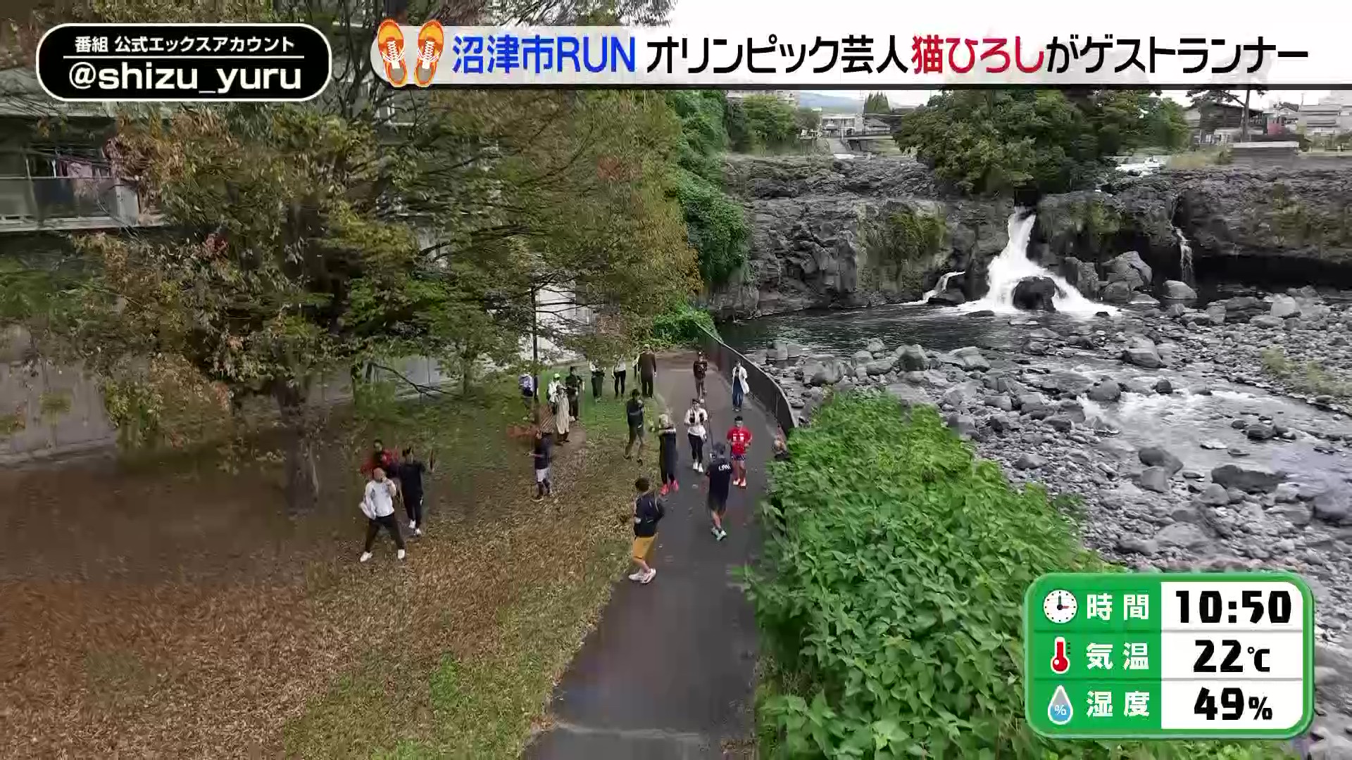 田村亮と、中村優が静岡をゆる〜く走るランニング番組。 今回はの舞台は沼津市!鮎壺の滝公園をスタートし、沼津港がゴール!ゲストに猫ひろしさんを迎え、富士山の絶景と海の幸に恵まれた沼津市をめぐります!どこを走りどこに寄るかは二人の気分次第。地域の方と触れ合いながらゴールを目指します! 本記事は【前編 11月9日 9:00~ 放送開始】の情報をお届けします!