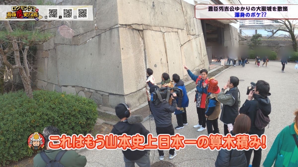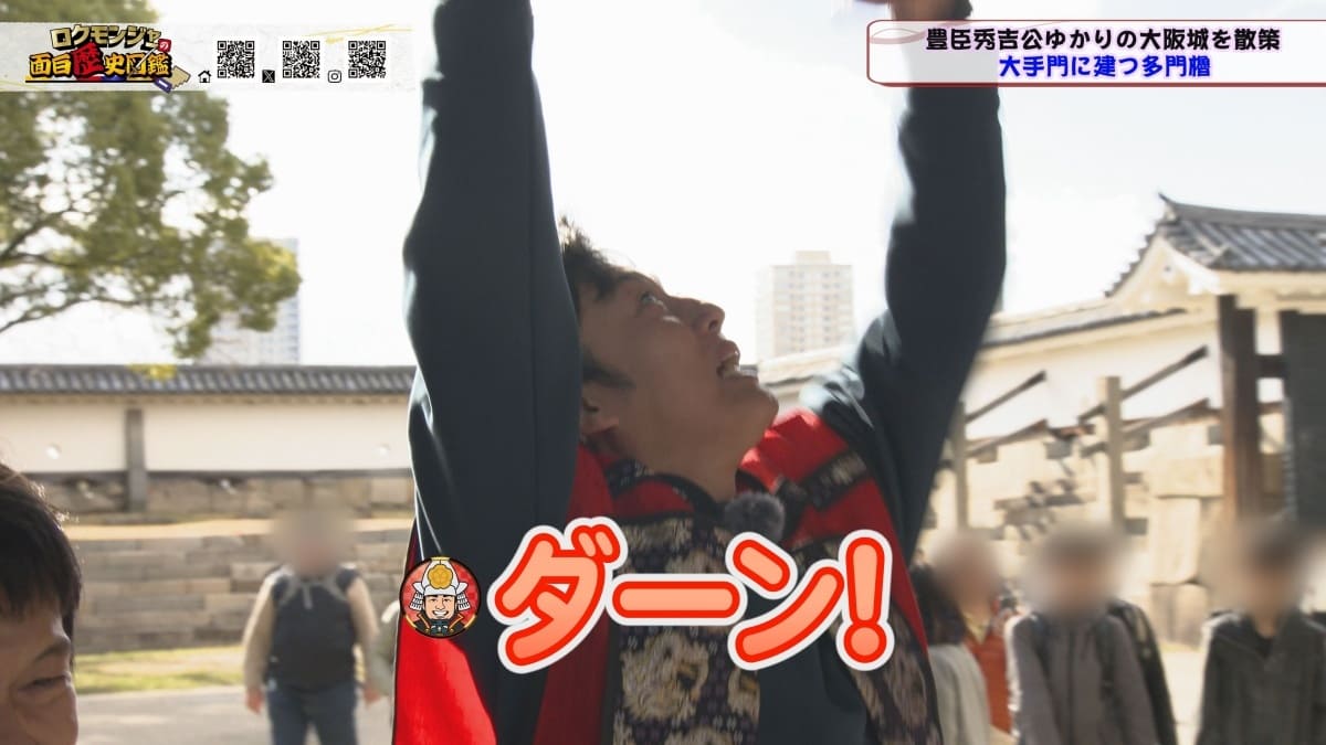 ※他ケーブルテレビでの放送日時は異なる場合がございます、ご契約のケーブルテレビ今日の番組表をご確認ください今回のロクモンジャーはオープニングからとんでもない展開に!?まず、いったいここは何処の何なのか??出演者が全く分からない不思議な場所からスタート!全員が困惑する中、房野さんから驚愕の事実が伝えられることに!何と、ロクモンジャーの面白歴史図鑑が今年の3月で終了する事に・・・ ハンモンジャーからはじまりロクモンジャーにパワーアップしたのも束の間、2026年03月の放送で終了となってしまいました。一体どうして番組が終わってしまうのか??そんな疑問をぶつけあう中、金田さんがとんでもない裏切り行為に!!一体何が起こったのか?そしてその時のメンバーの反応は?? オープニングでひと悶着あったりもしましたが、番組は進んでいきます!最高の最終回を迎えるため、一行が訪れたのは大阪城!この広~い敷地を散策しながら豊臣秀吉の歴史を紐解き、大阪城の建造物を紹介していきます。しかしこの大阪城、敷地の広さもさる事ながら、建造物一つ一つが規格外!!最初に訪れた大手門から一行のテンションはMAXに!テンションが上がると、思わぬところで対立が生まれたりするもので博さんとれきしクンが言い合いに・・・この決着の行方は?? 更に大阪城といえばコレ!巨大な石がいくつも点在し、その力を誇示している様子は圧巻の一言!そんな巨石を一行はある大会になぞらえ話を進めていきます。日本一有名なお笑いの大会といえば・・・ 更に更に、先へと進んだ一向にとんでもない規模のものが!!これ、普通の方が見ても素通りしてしまう、もしくは「立派だね!」程度の感想にしかならないものなのですが歴史が大好きな6人には全く違った印象になったようです!この発想は『歴史好き&お笑い芸人』だからこそかもしれません。一体何について、どのような感想を抱いたのかはぜひ番組をチェックしてみてください♪ 更に奥へ進むと日本一の大きさを誇る鏡石に遭遇♪別名「蛸石」と言われるこの巨石の前でも様々な展開に!!博さんが金田さんにある一言を放つのですが金田さんの反応が・・・更にいけやさんから無茶振りされ実行に移る博さん。そんな現場を目撃した外国人のお子さんが・・・ 大手門から本丸へと到着した一行、ここでも問題が発生!次の場所へ移動しようと提案した房野さんに対し、一行が猛反対!!その光景を見た房野さんが下した決断は、芸人としてあるまじき行為で・・・果たして房野さんは何をしたのでしょうか?? 2月のロクモンジャーは最終回前編!最後の瞬間までロクモンジャーの雄姿をその目に焼き付けてください。